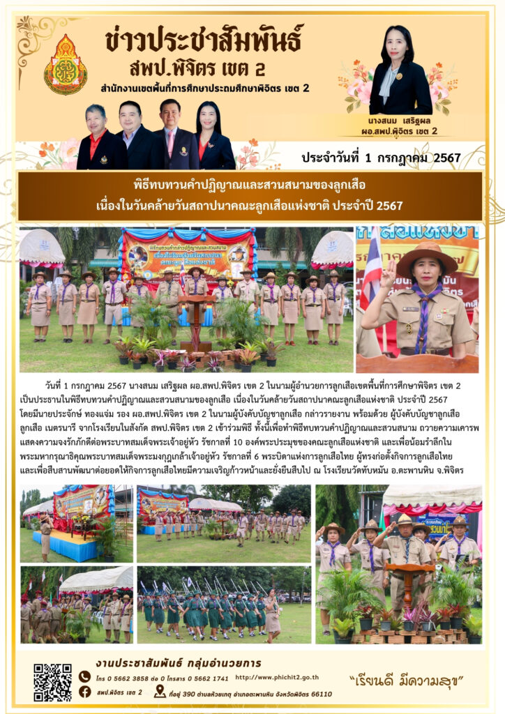 พิธีทบทวนคำปฏิญาณและสวนสนามของลูกเสือ เนื่องในวันคล้ายวันสถาปนาคณะลูกเสือแห่งชาติ ประจำปี 2567