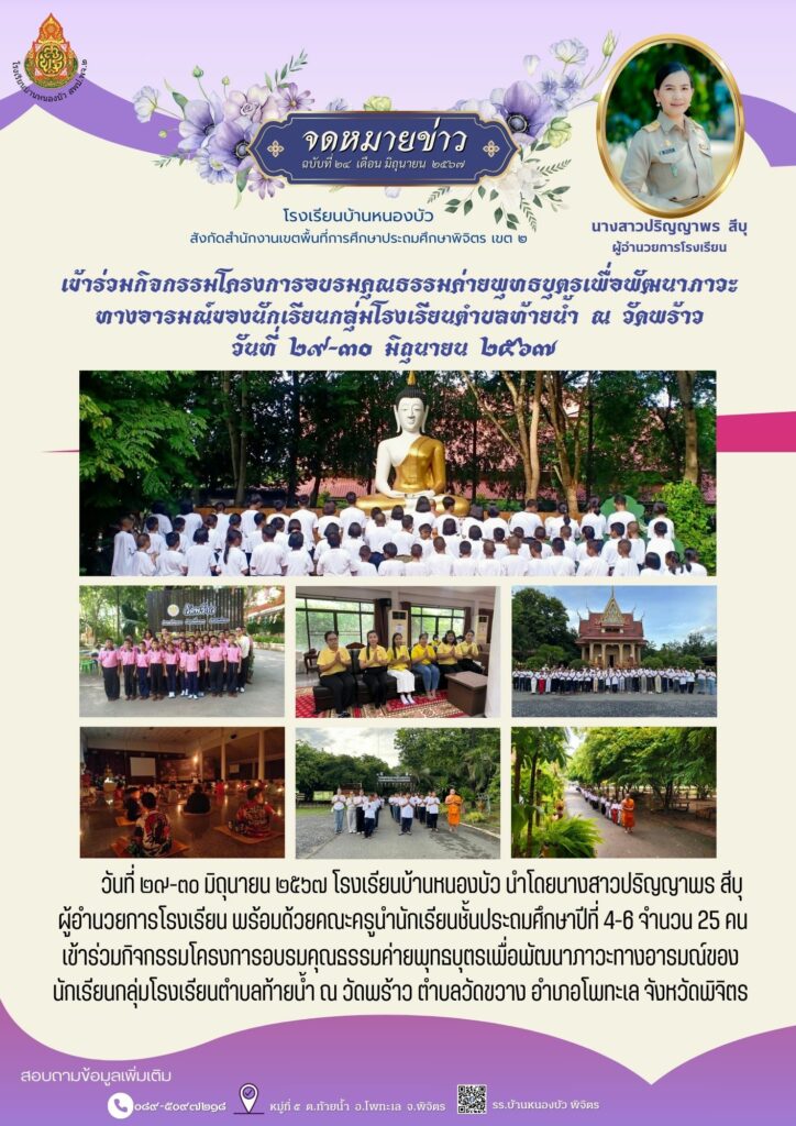 เข้าร่วมกิจกรรมโครงการอบรมคุณธรรมค่ายพุทธบุตรเพื่อพัฒนาภาวะทางอารมณ์ของนักเรียนกลุ่มโรงเรียนตำบลท้ายน้ำ ณ วัดพร้าว วันที่ 29-30 มิถุนายน 2567