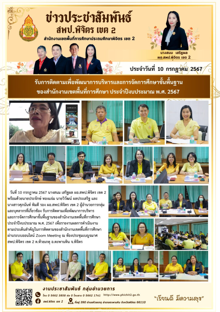 รับการติดตามเพื่อพัฒนาการบริหารและการจัดการศึกษาขั้นพื้นฐาน ของสำนักงานเขตพื้นที่การศึกษา ประจำปีงบประมาณ พ.ศ. 2567
