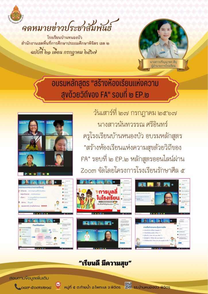 อบรมหลักสูตร “สร้างห้องเรียนแห่งความสุขด้วยวิถีของ FA”รอบที่ ๒ EP๒