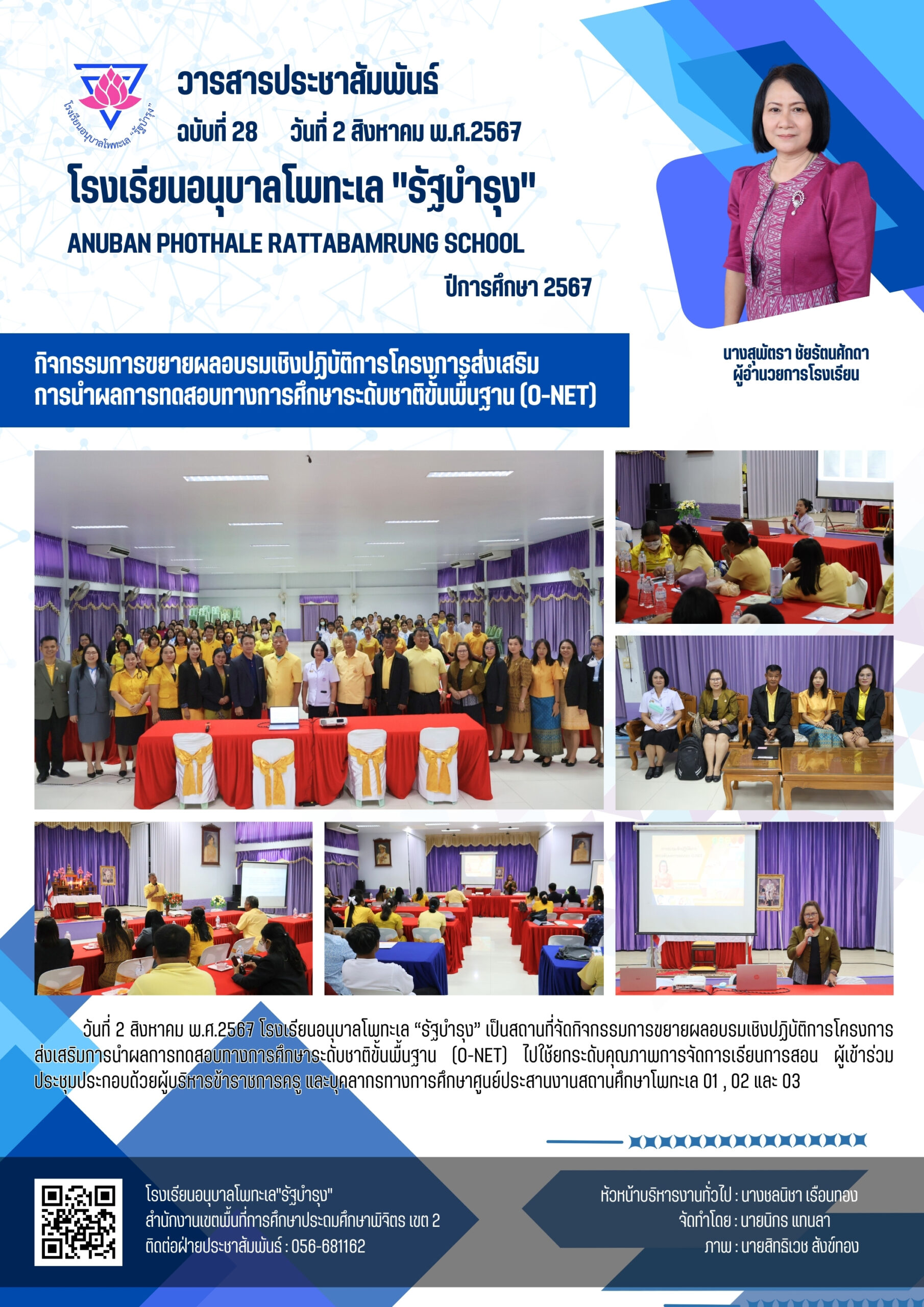 กิจกรรมการขยายผลอบรมเชิงปฏิบัติการโครงการส่งเสริม การนำผลการทดสอบทางการศึกษาระดับชาติขั้นพื้นฐาน (O-NET)