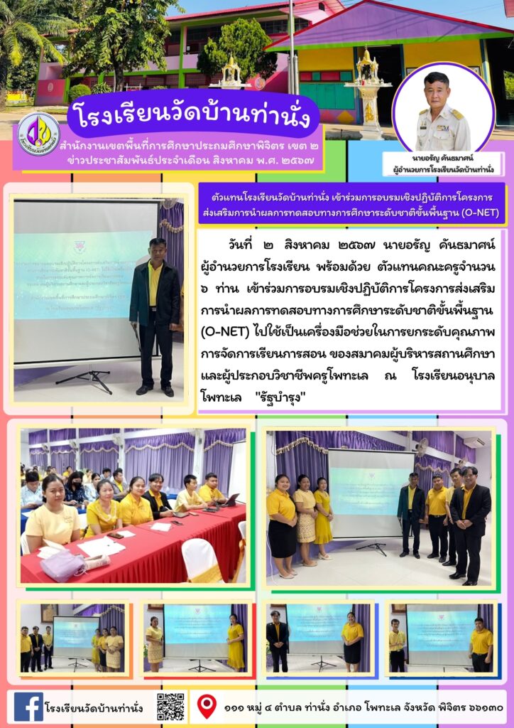 เข้าร่วมการอบรมโครงการส่งเสริมการนำผลการทดสอบทางการศึกษาขั้นพื้นฐาน (O-NET)