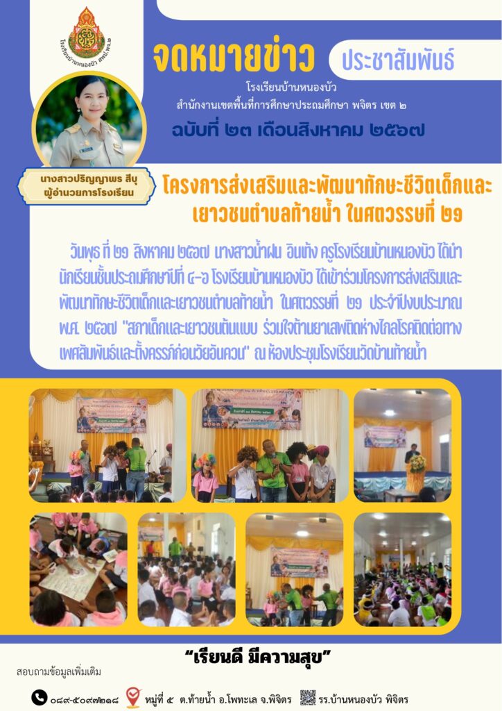 โครงการส่งเสริมและพัฒนาทักษะชีวิตเด็กและเยาวชนตำบลท้ายน้ำ ในศตวรรษที่๒๑