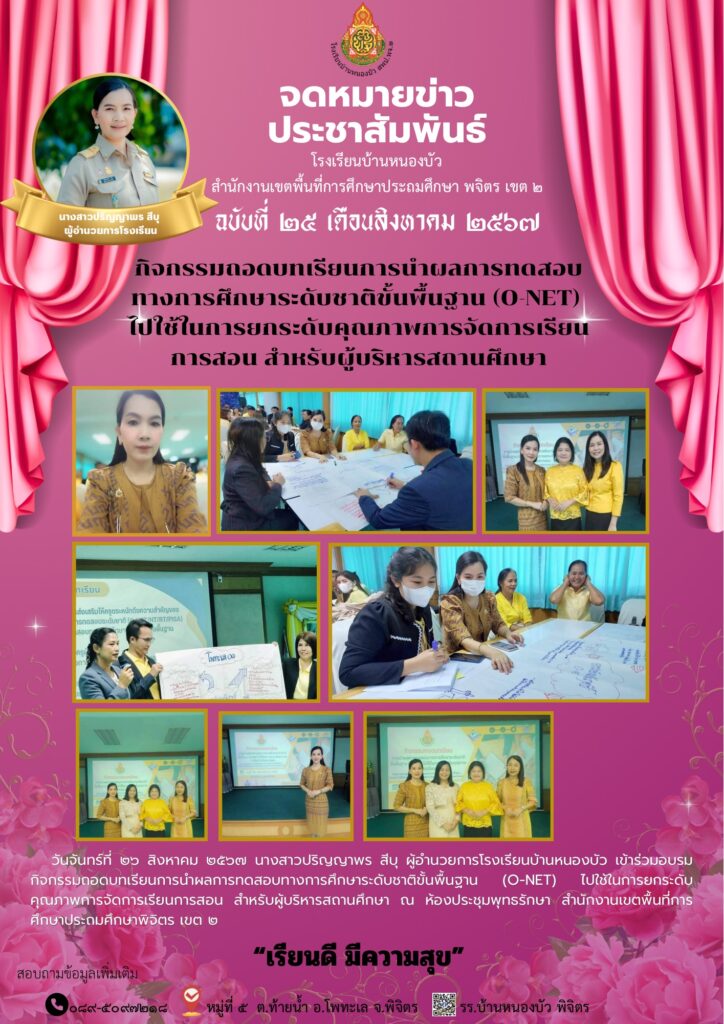กิจกรรมถอดบทเรียนการนำผลการทดสอบทางการศึกษาระดับชาติขั้นพื้นฐาน(O-NET)ไปใช้ในการยกระดับคุณภาพการจัดการเรียน การสอน สำหรับผู้บริหารสถานศึกษา