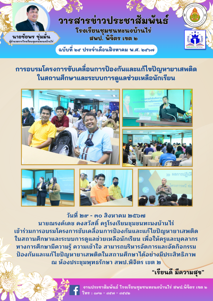 การอบรมโครงการขับเคลื่อนการป้องกันและแก้ไขปัญหายาเสพติด ในสถานศึกษาและระบบการดูแลช่วยเหลือนักเรียน