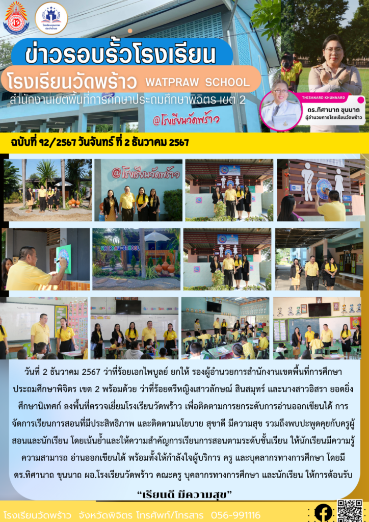 โรงเรียนวัดพร้าว รับการนิเทศ ติดตาม โครงการสุขาดี มีความสุข