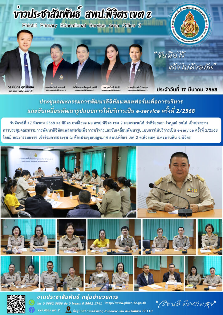 ประชุมคณะกรรมการพัฒนาดิจิทัลแพลตฟอร์มเพื่อการบริหาร และขับเคลื่อนพัฒนารูปแบบการให้บริการเป็น e-service ครั้งที่ 2/2568