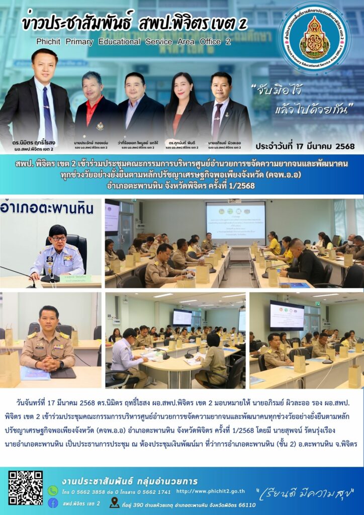 สพป. พิจิตร เขต 2 เข้าร่วมประชุมคณะกรรมการบริหารศูนย์อำนวยการขจัดความยากจนและพัฒนาคน ทุกช่วงวัยอย่างยั่งยืนตามหลักปรัชญาเศรษฐกิจพอเพียงจังหวัด (คจพ.อ.อ)อำเภอตะพานหิน จังหวัดพิจิตร ครั้งที่ 1/2568