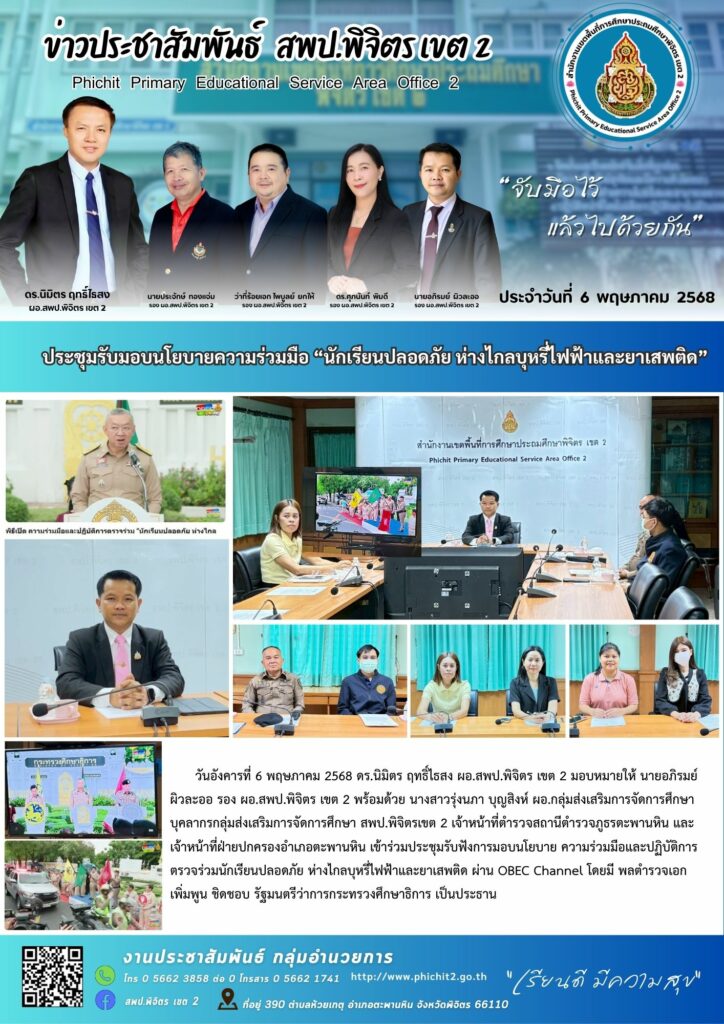 ประชุมรับมอบนโยบายความร่วมมือ “นักเรียนปลอดภัย ห่างไกลบุหรี่ไฟฟ้าและยาเสพติด”