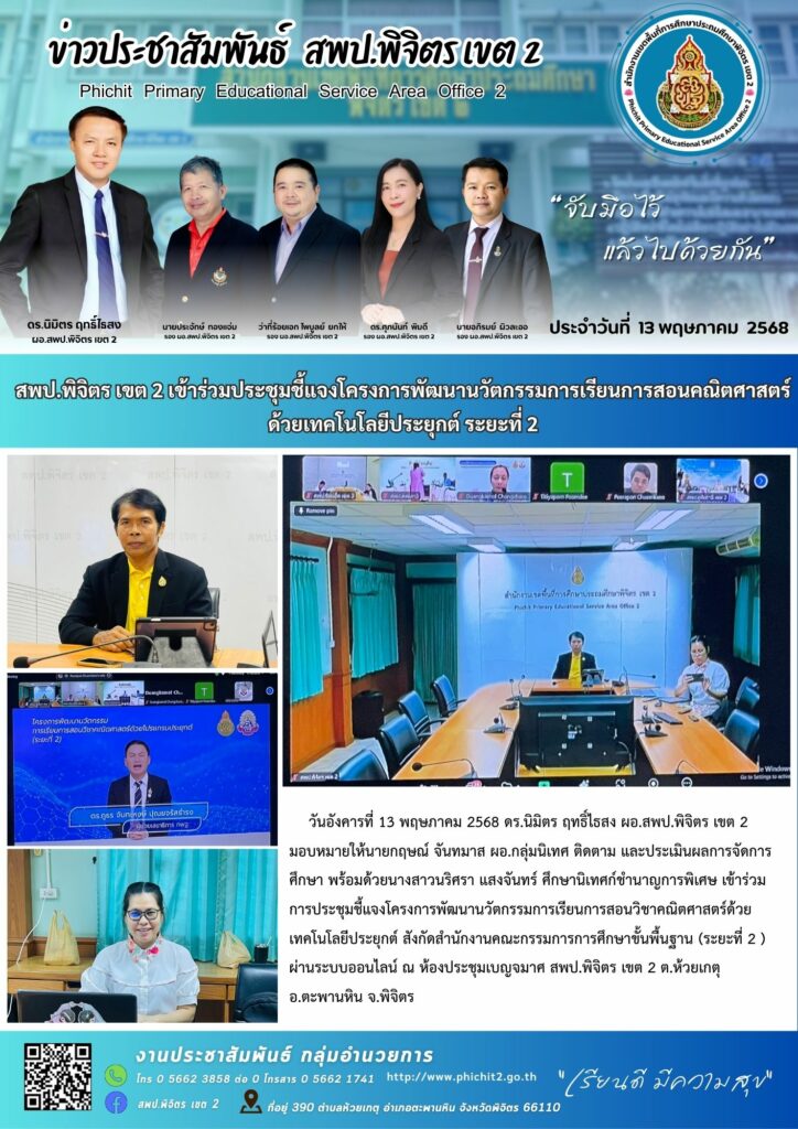 สพป.พิจิตร เขต 2 เข้าร่วมประชุมชี้แจงโครงการพัฒนานวัตกรรมการเรียนการสอนคณิตศาสตร์ ด้วยเทคโนโลยีประยุกต์ ระยะที่ 2