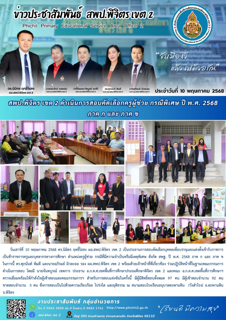 สพป.พิจิตร เขต 2 ดำเนินการสอบคัดเลือกครูผู้ช่วย กรณีพิเศษ ปี พ.ศ. 2568 ภาค ก และ ภาค ข