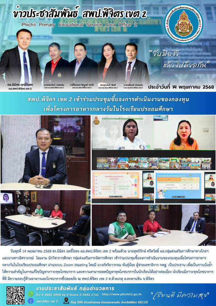สพป.พิจิตร เขต 2 เข้าร่วมประชุมชี้แจงการดำเนินงานของกองทุนเพื่อโครงการอาหารกลางวันในโรงเรียนประถมศึกษา