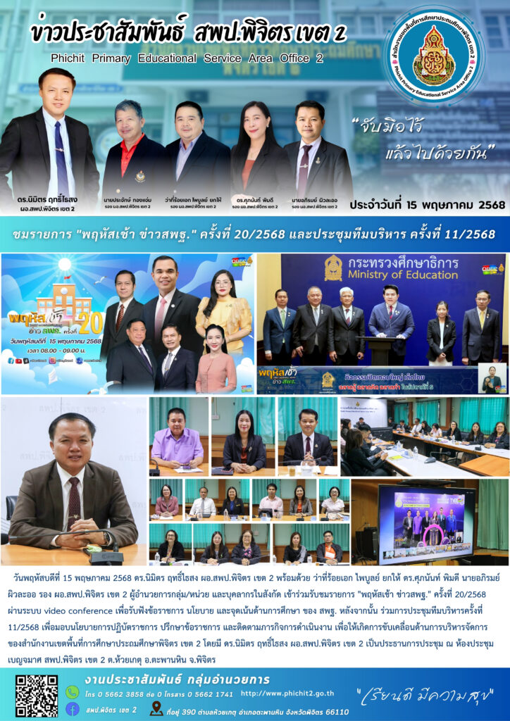 ชมรายการ “พฤหัสเช้า ข่าวสพฐ.” ครั้งที่ 20/2568 และประชุมทีมบริหาร ครั้งที่ 11/2568