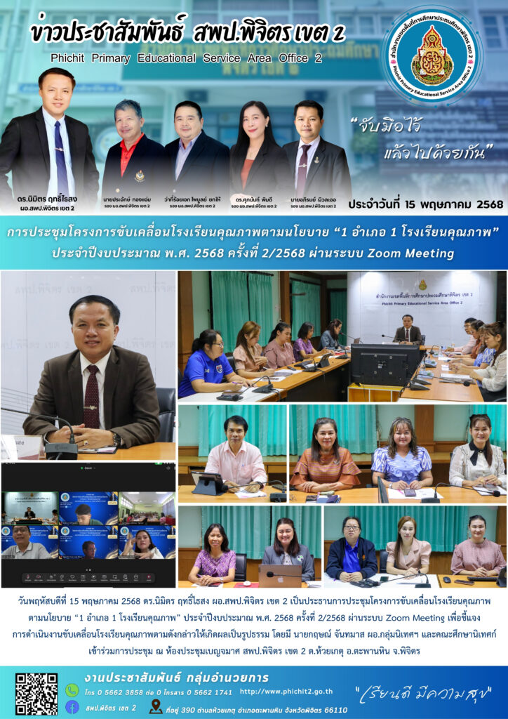 การประชุมโครงการขับเคลื่อนโรงเรียนคุณภาพตามนโยบาย “1 อำเภอ 1 โรงเรียนคุณภาพ” ประจำปีงบประมาณ พ.ศ. 2568 ครั้งที่ 2/2568 ผ่านระบบ Zoom Meeting