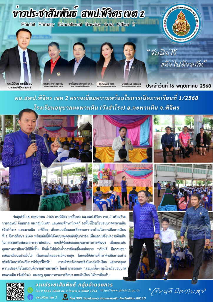ผอ.สพป.พิจิตร เขต 2 ตรวจเยี่ยมความพร้อมในการเปิดภาคเรียนที่ 1/2568 โรงเรียนอนุบาลตะพานหิน (วังสำโรง) อ.ตะพานหิน จ.พิจิตร