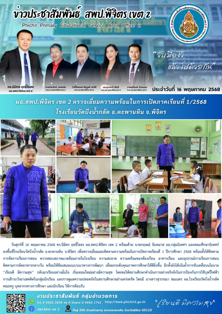 ผอ.สพป.พิจิตร เขต 2 ตรวจเยี่ยมความพร้อมในการเปิดภาคเรียนที่ 1/2568 โรงเรียนวัดบึงน้ำกลัด อ.ตะพานหิน จ.พิจิตร