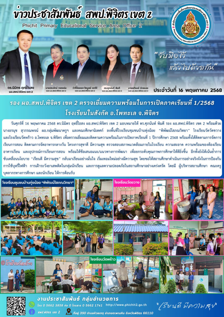 รอง ผอ.สพป.พิจิตร เขต 2 ตรวจเยี่ยมความพร้อมในการเปิดภาคเรียนที่ 1/2568 โรงเรียนในสังกัด อ.โพทะเล จ.พิจิตร