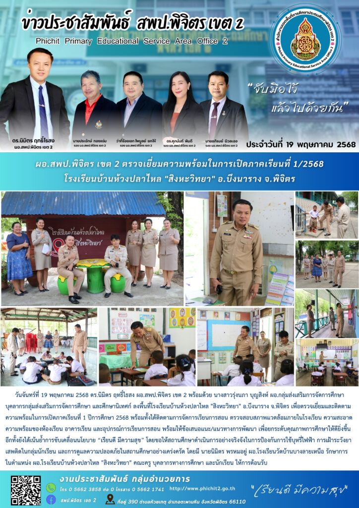 ผอ.สพป.พิจิตร เขต 2 ตรวจเยี่ยมความพร้อมในการเปิดภาคเรียนที่ 1/2568 โรงเรียนบ้านห้วงปลาไหล “สิงหะวิทยา” อ.บึงนาราง จ.พิจิตร