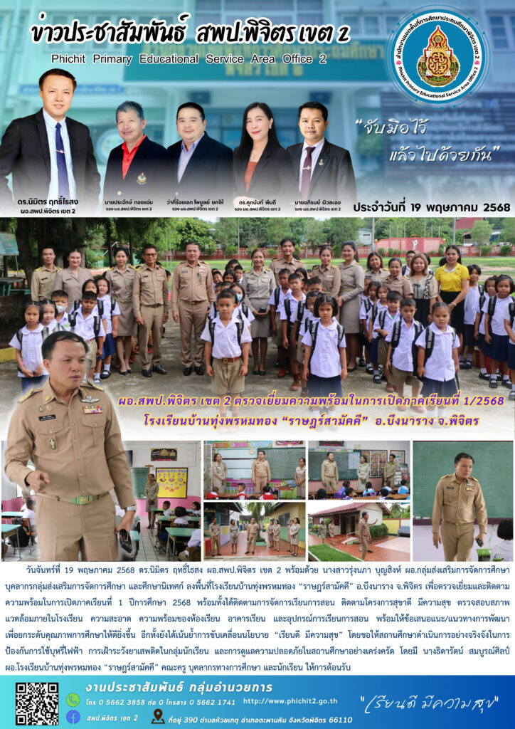ผอ.สพป.พิจิตร เขต 2 ตรวจเยี่ยมความพร้อมในการเปิดภาคเรียนที่ 1/2568 โรงเรียนบ้านทุ่งพรหมทอง “ราษฎร์สามัคคี” อ.บึงนาราง จ.พิจิตร