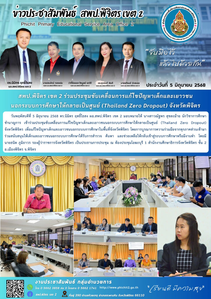 สพป.พิจิตร เขต 2 ร่วมประชุมขับเคลื่อนการแก้ไขปัญหาเด็กและเยาวชนนอกระบบการศึกษาให้กลายเป็นศูนย์ (Thailand Zero Dropout) จังหวัดพิจิตร