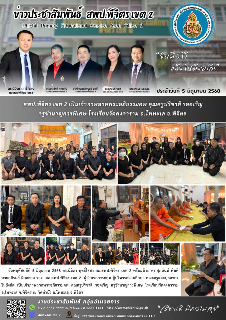 สพป.พิจิตร เขต 2 เป็นเจ้าภาพสวดพระอภิธรรมศพ คุณครูปริชาติ รอดเริญ ครูชำนาญการพิเศษ โรงเรียนวัดคงคาราม อ.โพทะเล จ.พิจิตร