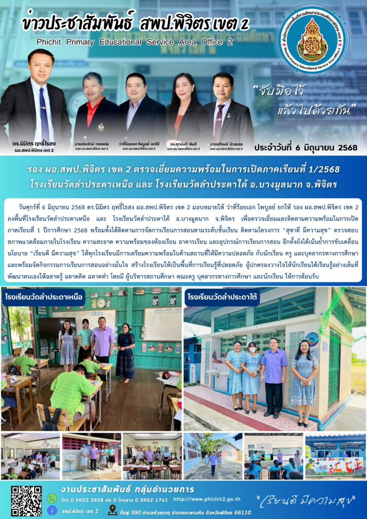 รอง ผอ.สพป.พิจิตร เขต 2 ตรวจเยี่ยมความพร้อมในการเปิดภาคเรียนที่ 1/2568 โรงเรียนวัดลำประดาเหนือ และ โรงเรียนวัดลำประดาใต้ อ.บางมูลนาก จ.พิจิตร