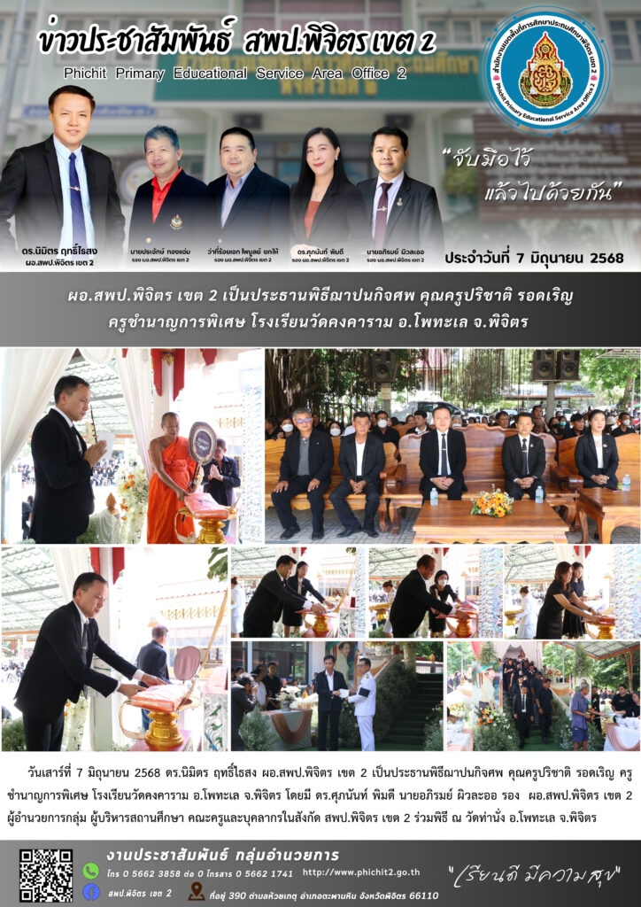 ผอ.สพป.พิจิตร เขต 2 เป็นประธานพิธีฌาปนกิจศพ คุณครูปริชาติ รอดเริญ ครูชำนาญการพิเศษ โรงเรียนวัดคงคาราม อ.โพทะเล จ.พิจิตร