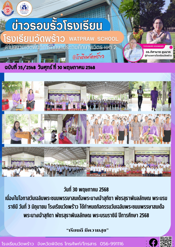 กิจกรรมวันเฉลิมพระชนมพรรษาสมเด็จพระนางเจ้าสุทิดา พัชรสุธาพิมลลักษณ พระบรมราชินี ปีการศึกษา 2568