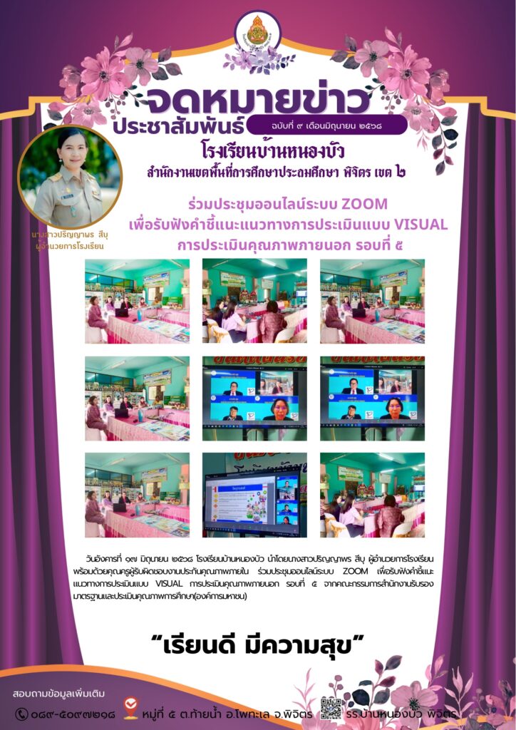 ร่วมประชุมออนไลน์ระบบ ZOOM เพื่อรับฟังคำชี้แนะแนวทางการประเมินแบบ VISUAL การประเมินคุณภาพภายนอก รอบที่ ๕