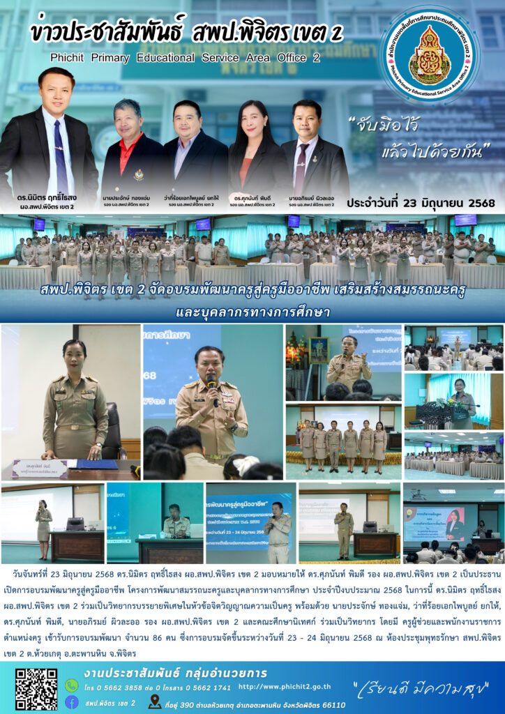สพป.พิจิตร เขต 2 จัดอบรมพัฒนาครูสู่ครูมืออาชีพ เสริมสร้างสมรรถนะครู และบุคลากรทางการศึกษา