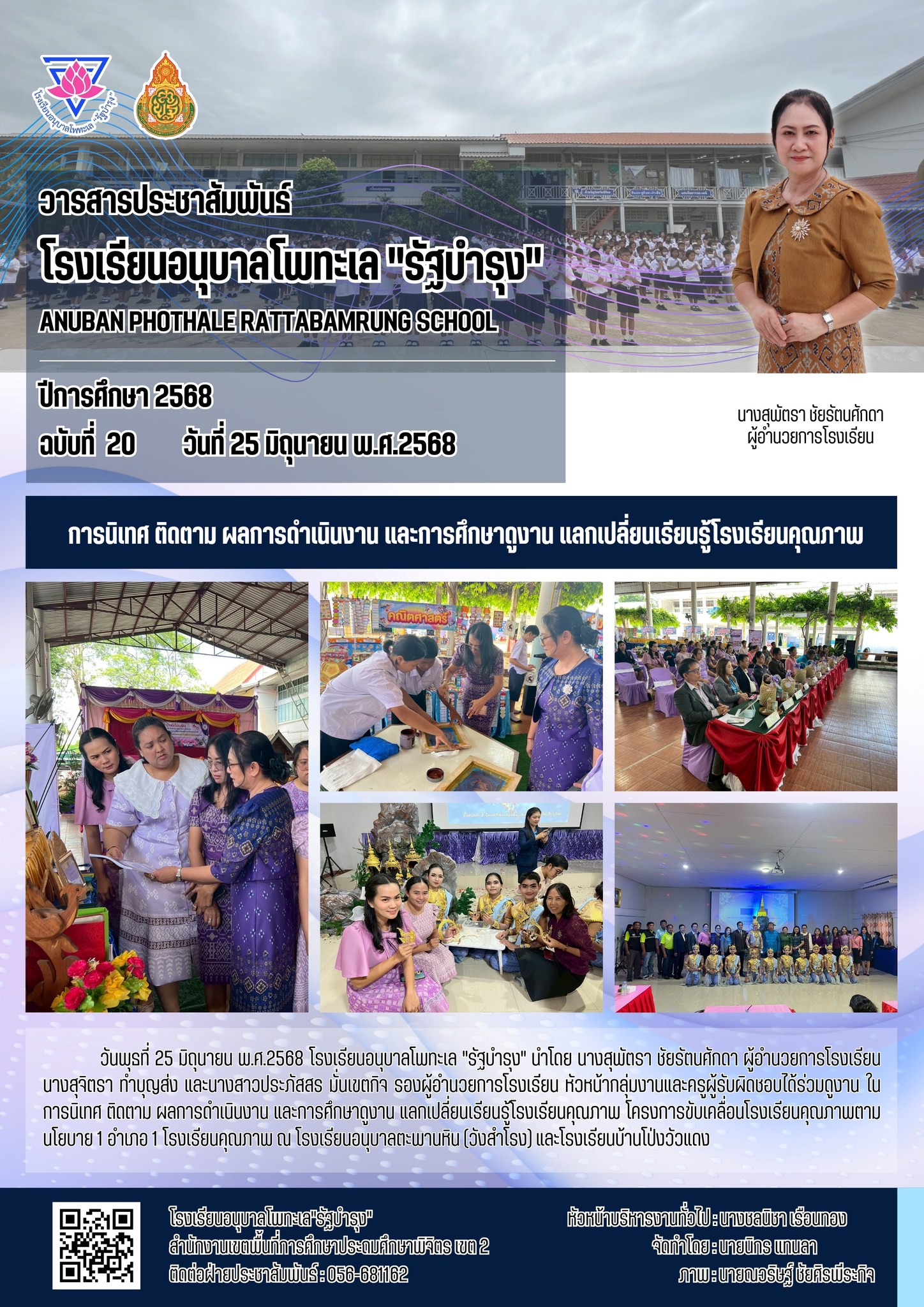 การนิเทศ ติดตาม ผลการดำเนินงาน และการศึกษาดูงาน แลกเปลี่ยนเรียนรู้โรงเรียนคุณภาพ
