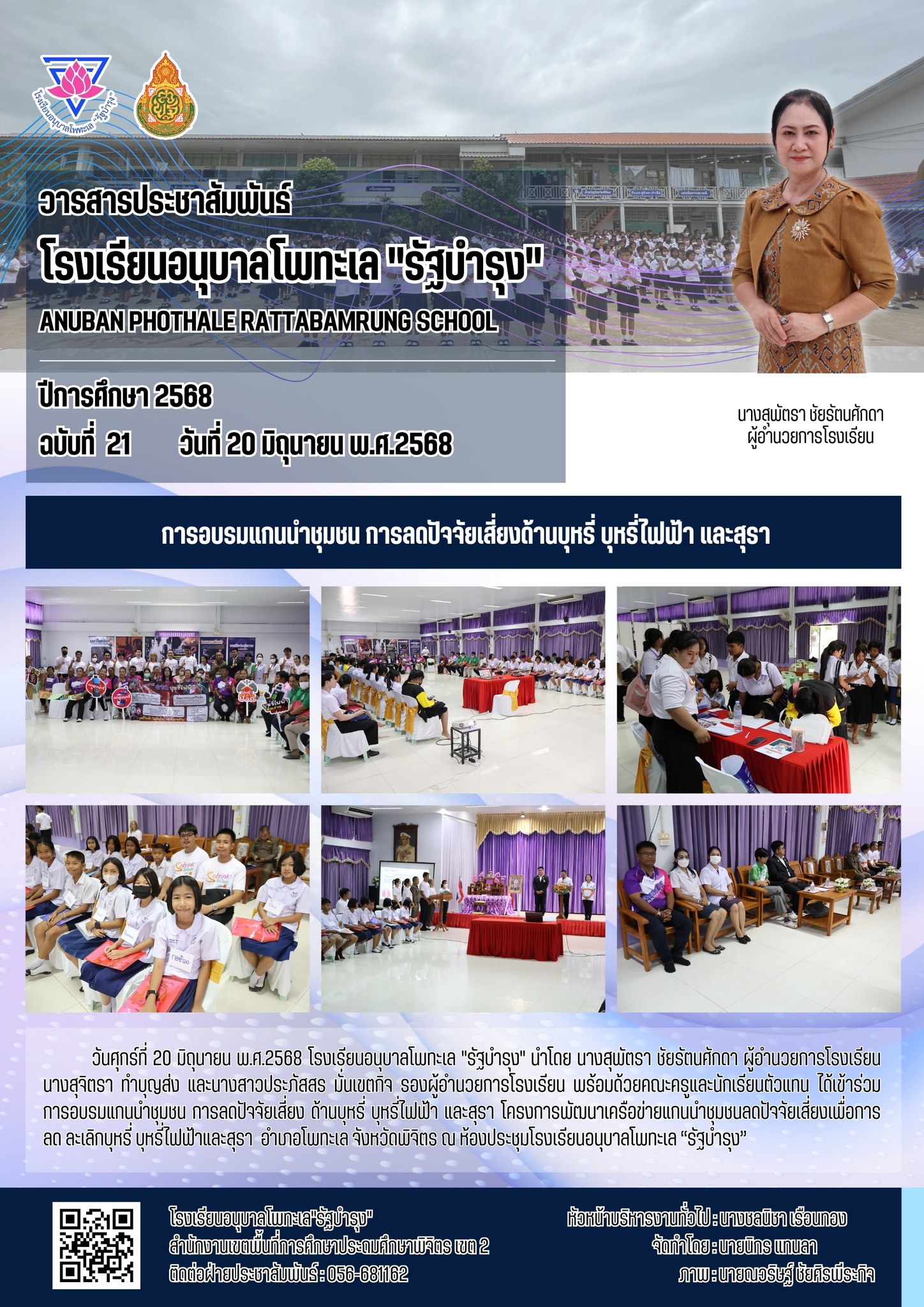 การอบรมแกนนำชุมชน การลดปัจจัยเสี่ยงด้านบุหรี่ บุหรี่ไฟฟ้า และสุรา