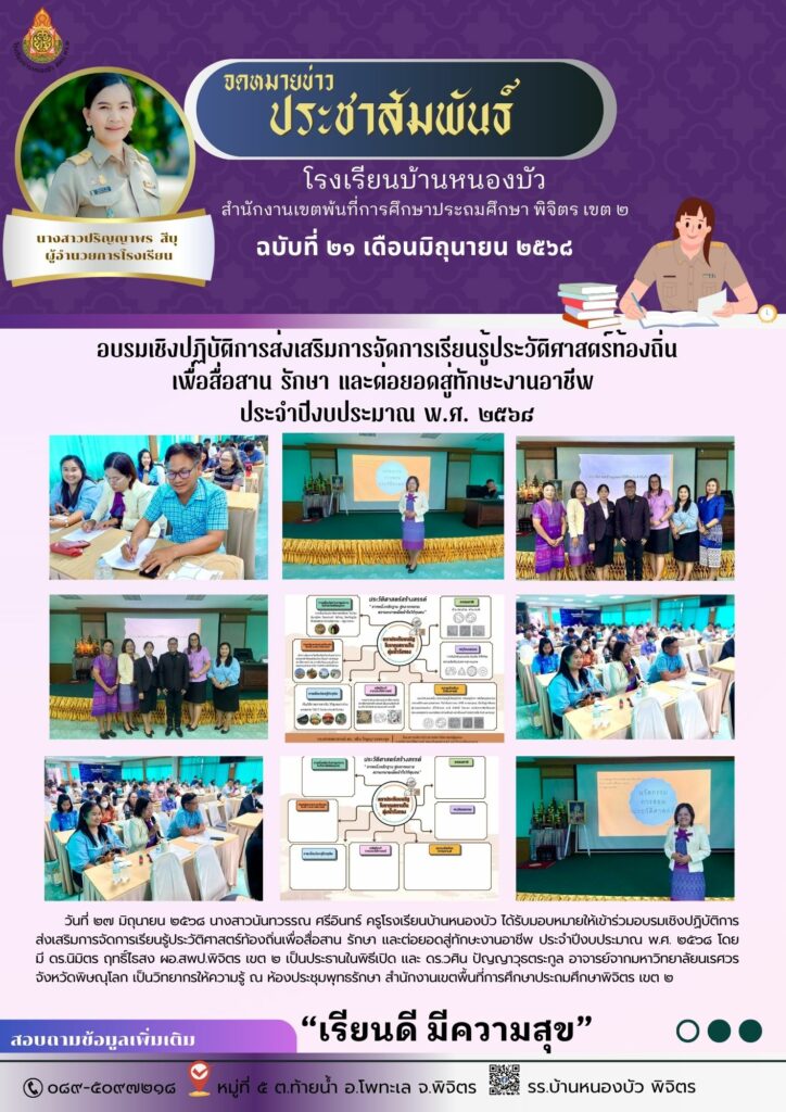 อบรมเชิงปฏิบัติการส่งเสริมการจัดการเรียนรู้ประวัติศาสตร์ท้องถิ่นเพื่อสื่อสาน รักษา และต่อยอดสู่ทักษะงานอาชีพ ประจำปีงบประมาณ พ.ศ. ๒๕๖๘