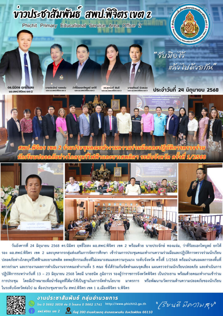 สพป.พิจิตร เขต 2 ร่วมประชุมคณะทำงานความร่วมมือและปฏิบัติการตรวจร่วมนักเรียนปลอดภัยห่างไกลบุหรี่ไฟฟ้าและยาเสพติดฯ ระดับจังหวัด ครั้งที่ 1/2568