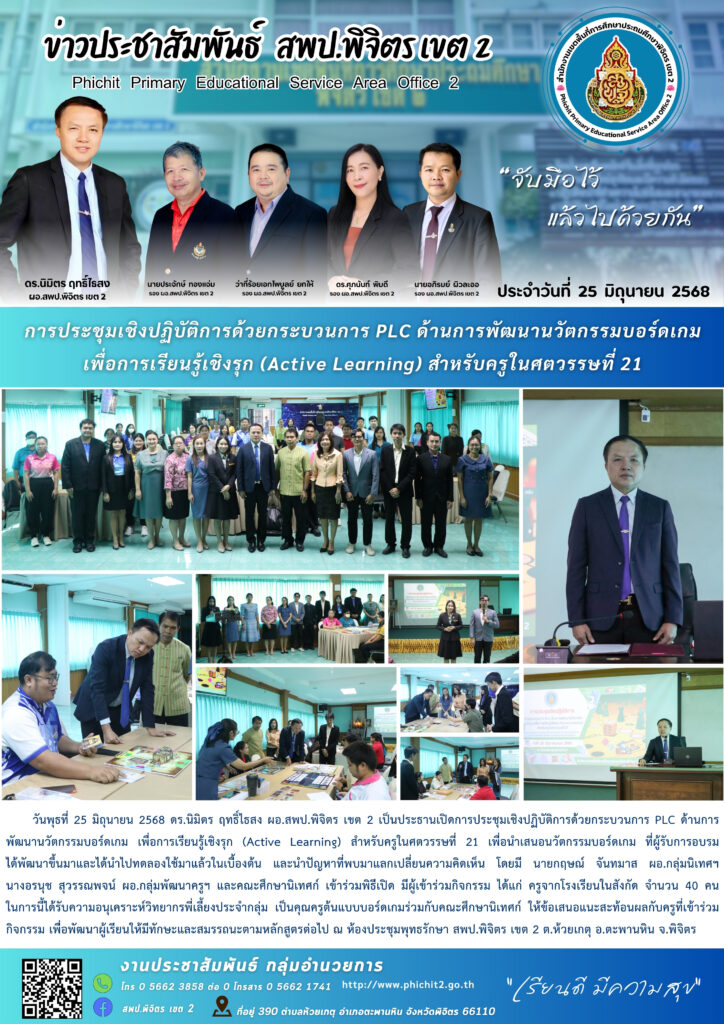 การประชุมเชิงปฏิบัติการด้วยกระบวนการ PLC ด้านการพัฒนานวัตกรรมบอร์ดเกม เพื่อการเรียนรู้เชิงรุก (Active Learning) สำหรับครูในศตวรรษที่ 21