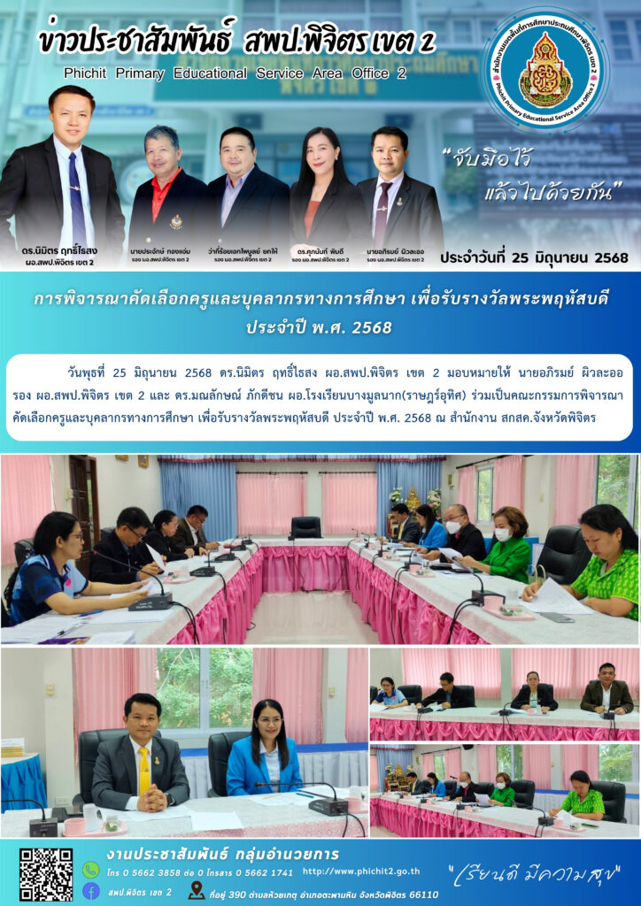 การพิจารณาคัดเลือกครูและบุคลากรทางการศึกษา เพื่อรับรางวัลพระพฤหัสบดี ประจำปี พ.ศ. 2568
