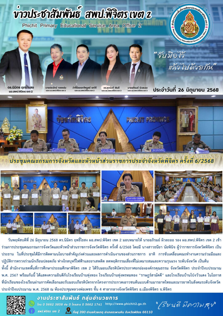 ประชุมคณะกรมการจังหวัดและหัวหน้าส่วนราชการประจำจังหวัดพิจิตร ครั้งที่ 6/2568