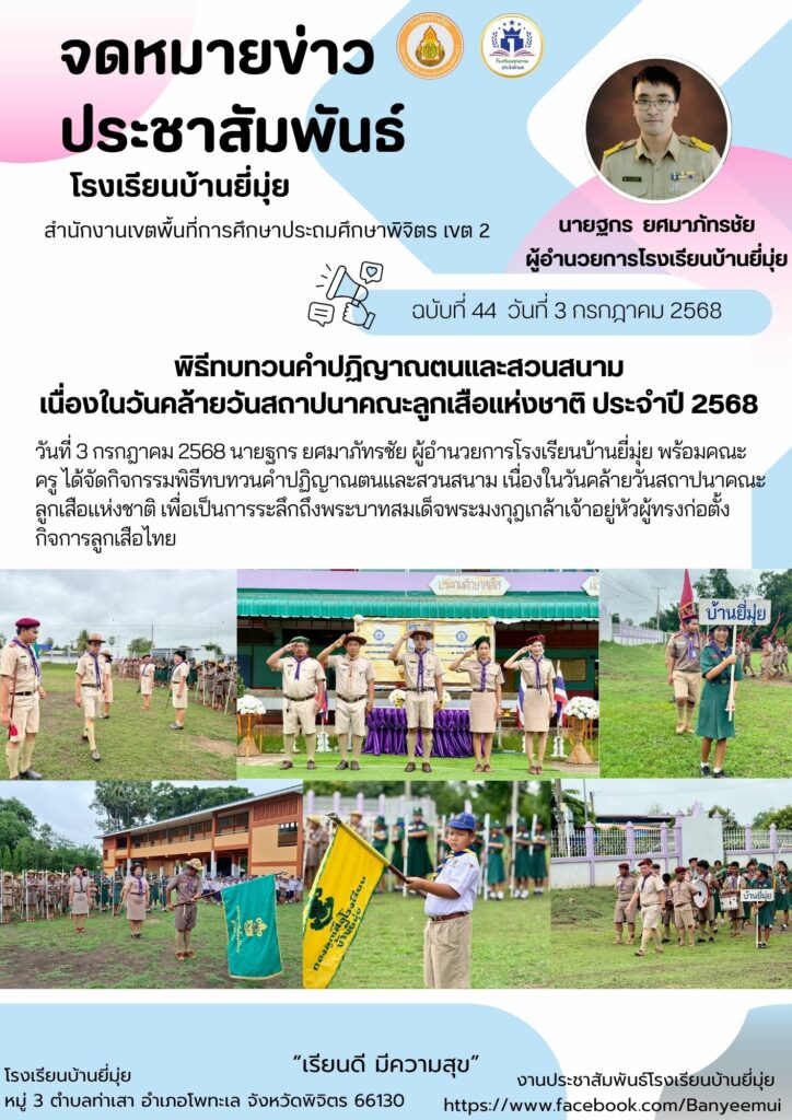 พิธีทบทวนคำปฏิญาณตนและสวนสนามเนื่องในวันคล้ายวันสถาปนาคณะลูกเสือแห่งชาติ ประจำปี 2568