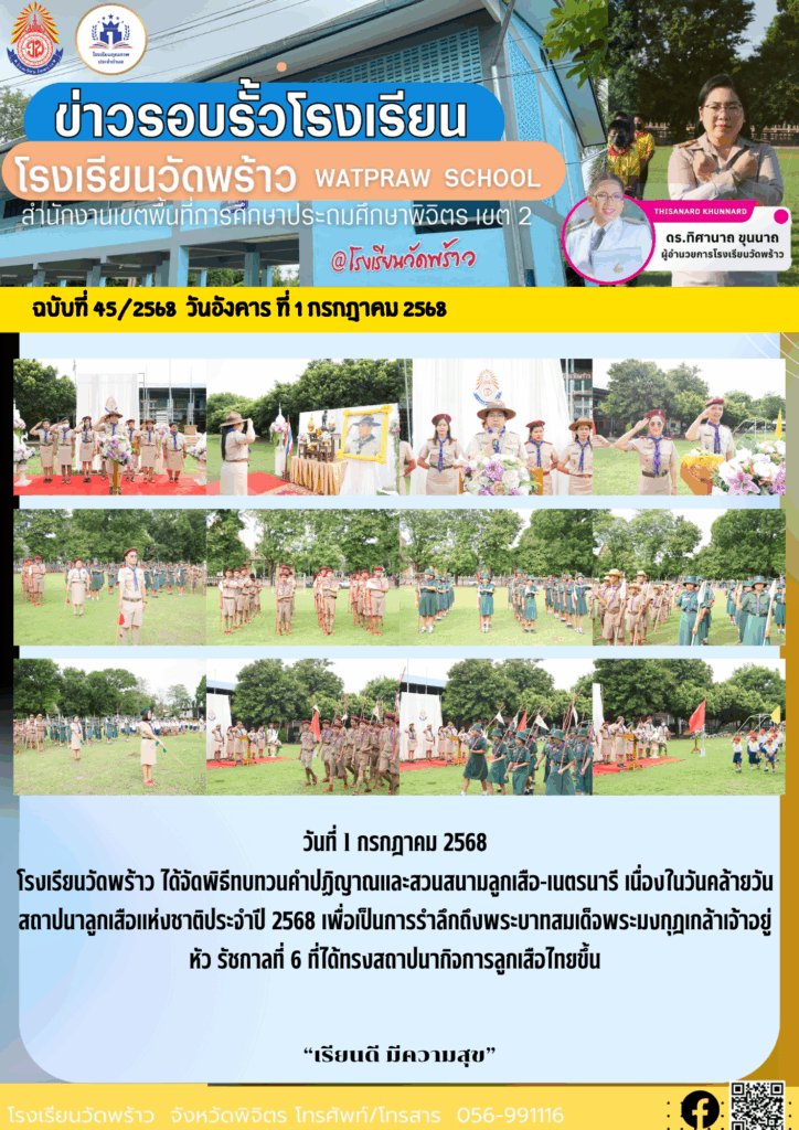จัดพิธีทบทวนคำปฏิญาณและสวนสนามลูกเสือ-เนตรนารี เนื่องในวันคล้ายวันสถาปนาลูกเสือแห่งชาติประจำปี 2568