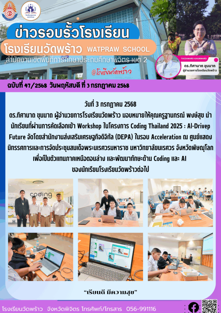 นำนักเรียนที่ผ่านการคัดเลือกเข้า Workshop ในโครงการ Coding Thailand 2025 : Al-Drivep Future
