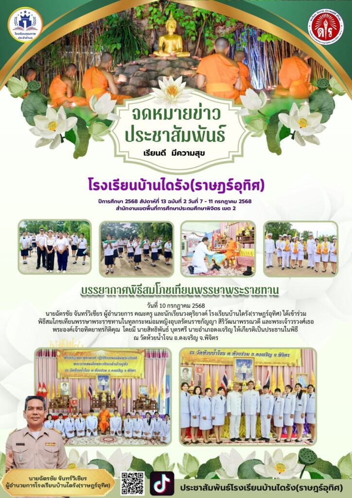 วารสารประชาสัมพันธ์โรงเรียนบ้านไดรัง(ราษฎร์อุทิศ) สัปดาห์ที่ 13 ฉบับที่ 1-2 วันที่ 7 – 11 กรกฎาคม 2568