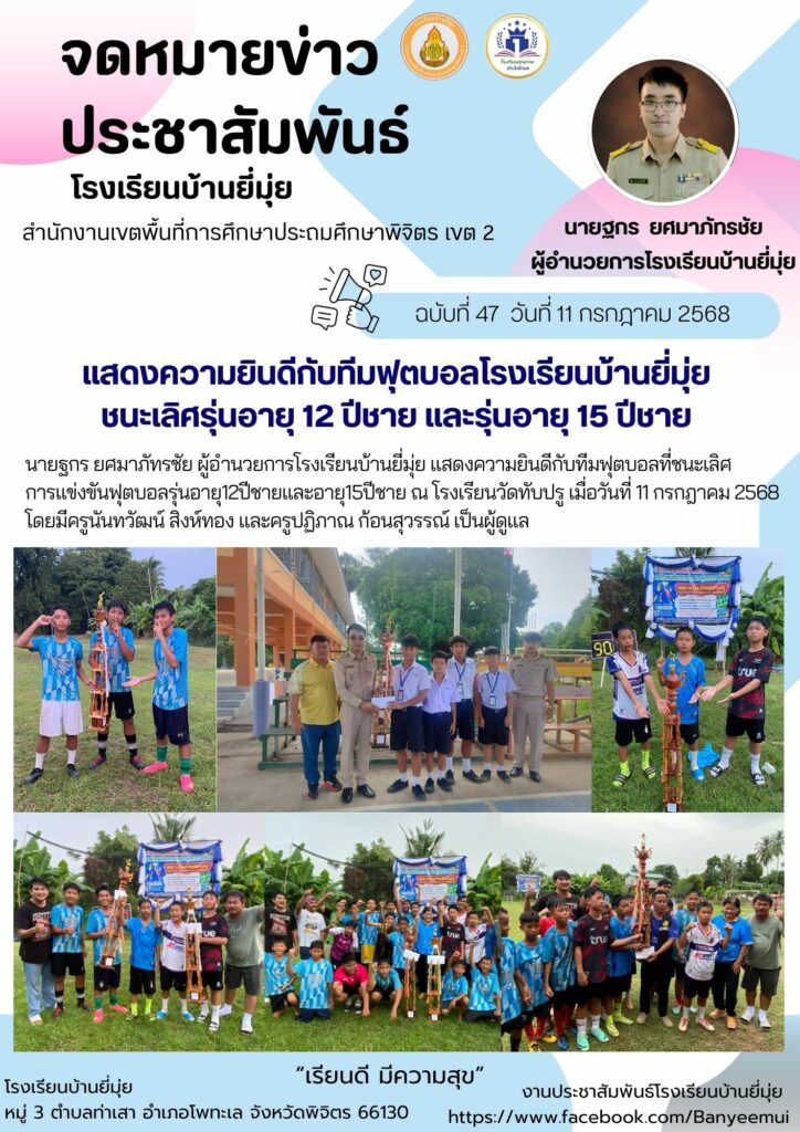แสดงความยินดีกับทีมฟุตบอลโรงเรียนบ้านยี่มุ่ยชนะเลิศรุ่นอายุ 12 ปีชาย และรุ่นอายุ 15 ปีชาย
