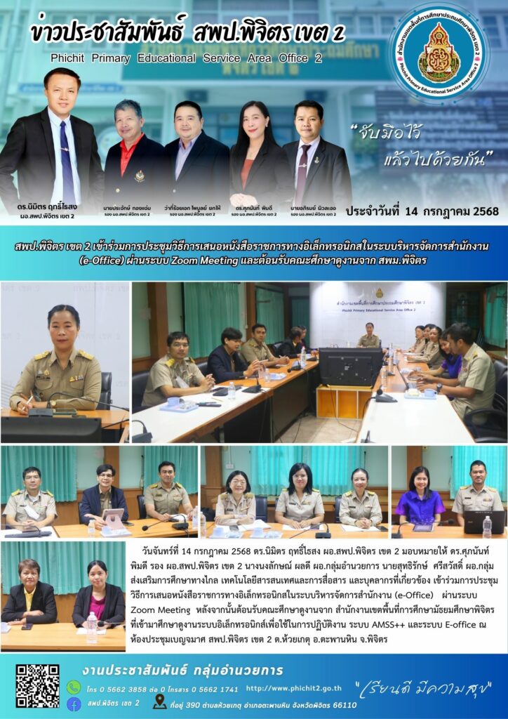 สพป.พิจิตร เขต 2 เข้าร่วมการประชุมวิธีการเสนอหนังสือราชการทางอิเล็กทรอนิกส์ในระบบริหารจัดการสำนักงาน (e-Office) ผ่านระบบ Zoom Meeting และต้อนรับคณะศึกษาดูงานจาก สพม.พิจิตร