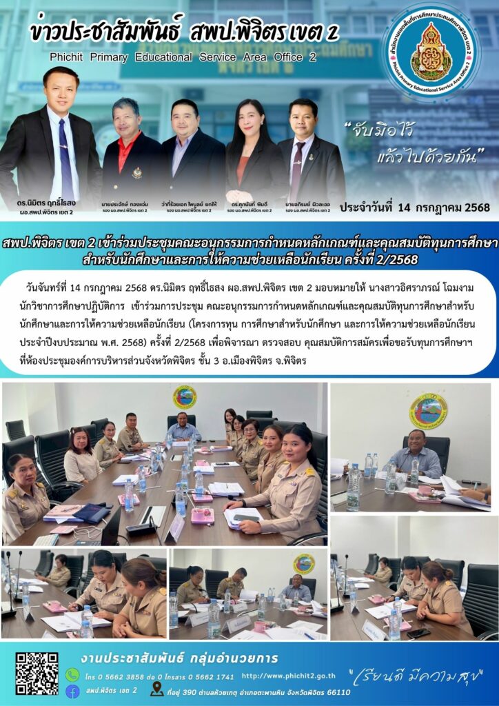 สพป.พิจิตร เขต 2 เข้าร่วมประชุมคณะอนุกรรมการกำหนดหลักเกณฑ์และคุณสมบัติทุนการศึกษาสำหรับนักศึกษาและการให้ความช่วยเหลือนักเรียน ครั้งที่ 2/2568