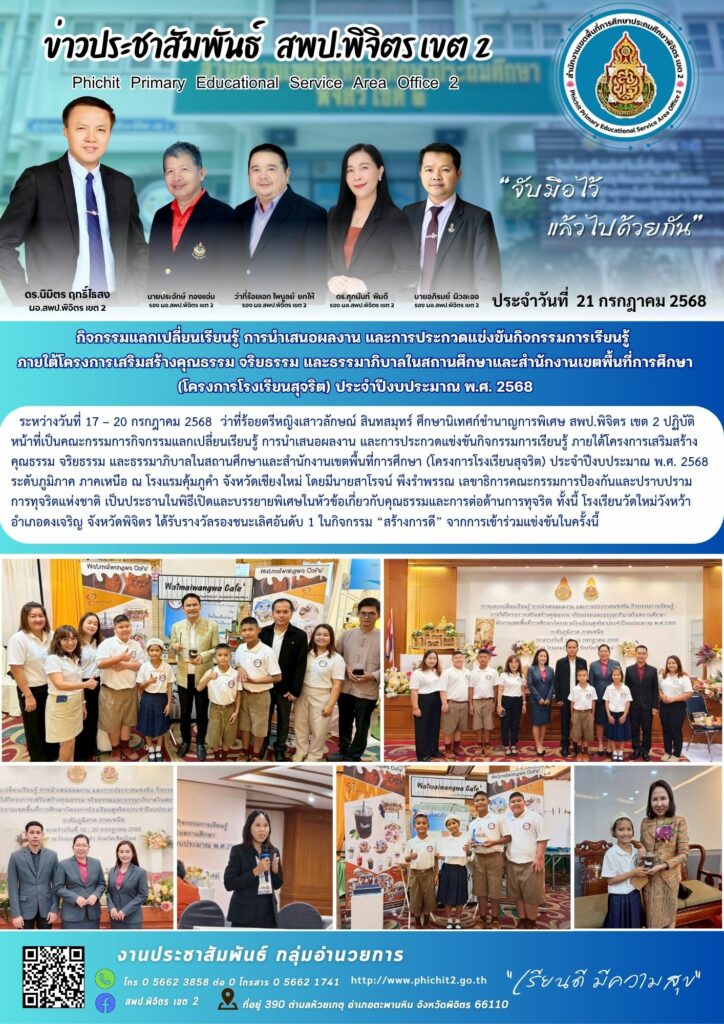 กิจกรรมแลกเปลี่ยนเรียนรู้ การนำเสนอผลงาน และการประกวดแข่งขันกิจกรรมการเรียนรู้ภายใต้โครงการเสริมสร้างคุณธรรม จริยธรรม และธรรมาภิบาลในสถานศึกษาและสำนักงานเขตพื้นที่การศึกษา (โครงการโรงเรียนสุจริต) ประจำปีงบประมาณ พ.ศ. 2568