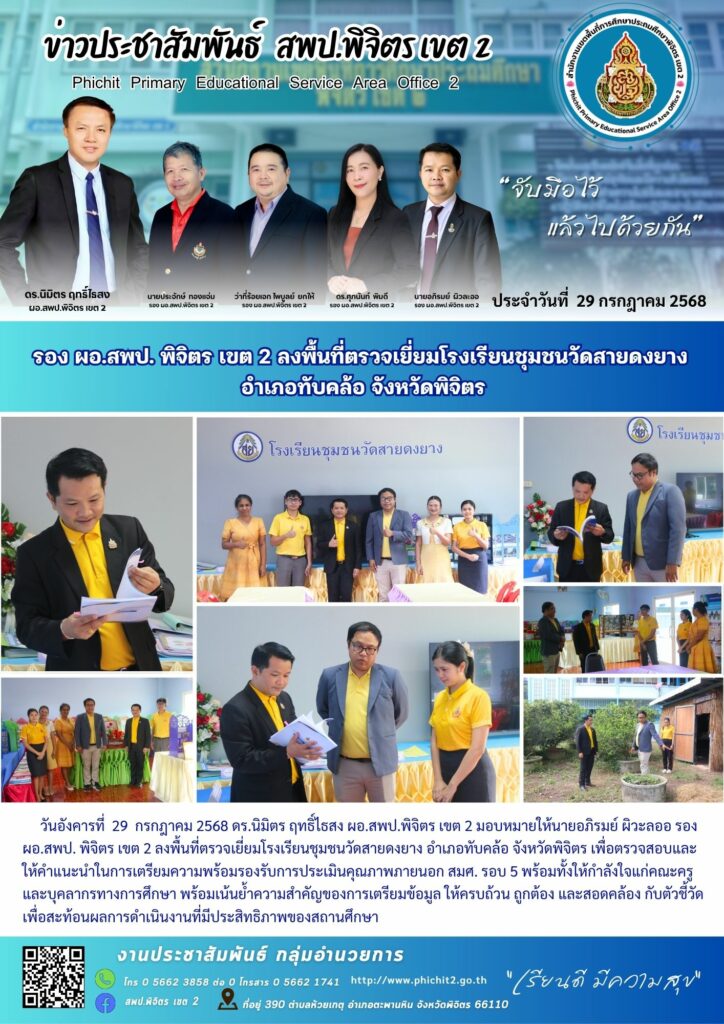 รอง ผอ.สพป. พิจิตร เขต 2 ลงพื้นที่ตรวจเยี่ยมโรงเรียนชุมชนวัดสายดงยาง อำเภอทับคล้อ จังหวัดพิจิตร