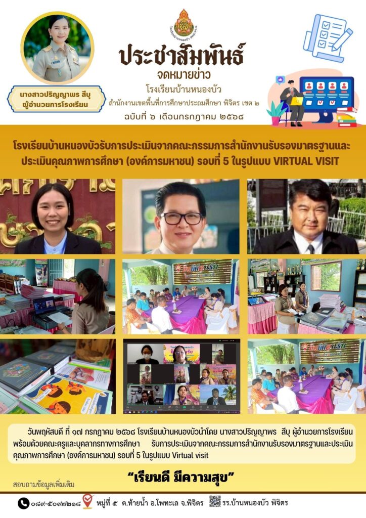 โรงเรียนบ้านหนองบัวรับการประเมินจากคณะกรรมการสำนักงานรับรองมาตรฐานและประเมินคุณภาพการศึกษา (องค์การมหาชน) รอบที่ 5 ในรูปแบบ VIRTUAL VISIT