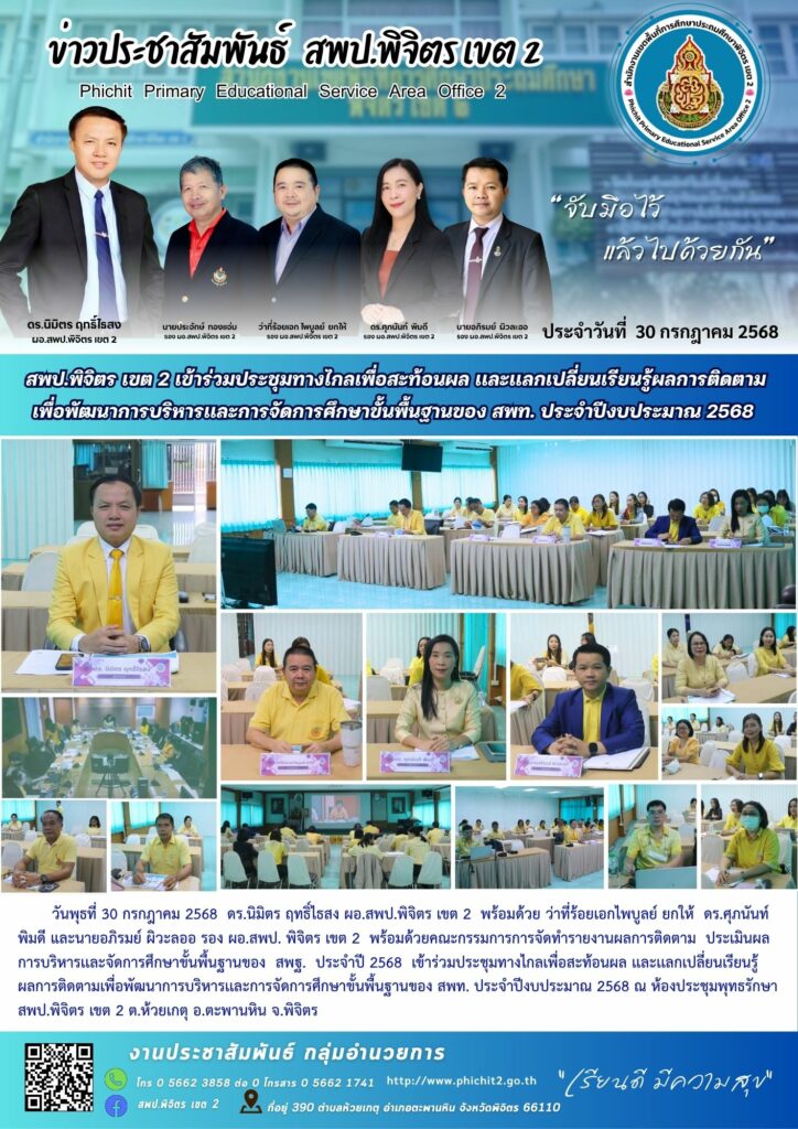 สพป.พิจิตร เขต 2 เข้าร่วมประชุมทางไกลเพื่อสะท้อนผล เเละเเลกเปลี่ยนเรียนรู้ผลการติดตามเพื่อพัฒนาการบริหารเเละการจัดการศึกษาขั้นพื้นฐานของ สพท. ประจำปีงบประมาณ 2568