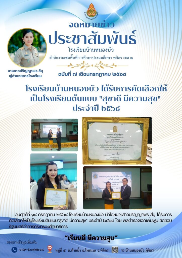 โรงเรียนบ้านหนองบัว ได้รับการคัดเลือกให้เป็นโรงเรียนต้นแบบ “สุขาดี มีความสุข” ประจำปี ๒๕๖๘