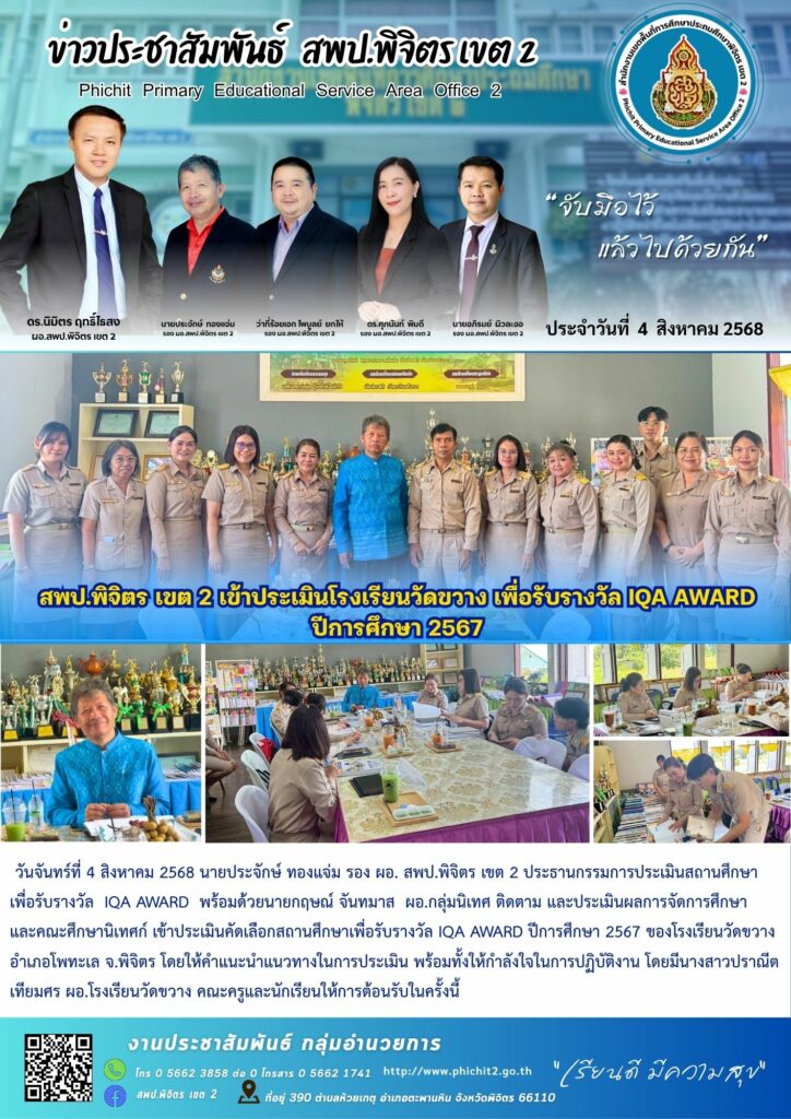 สพป.พิจิตร เขต 2 เข้าประเมินโรงเรียนวัดขวาง เพื่อรับรางวัล IQA AWARD ปีการศึกษา 2567